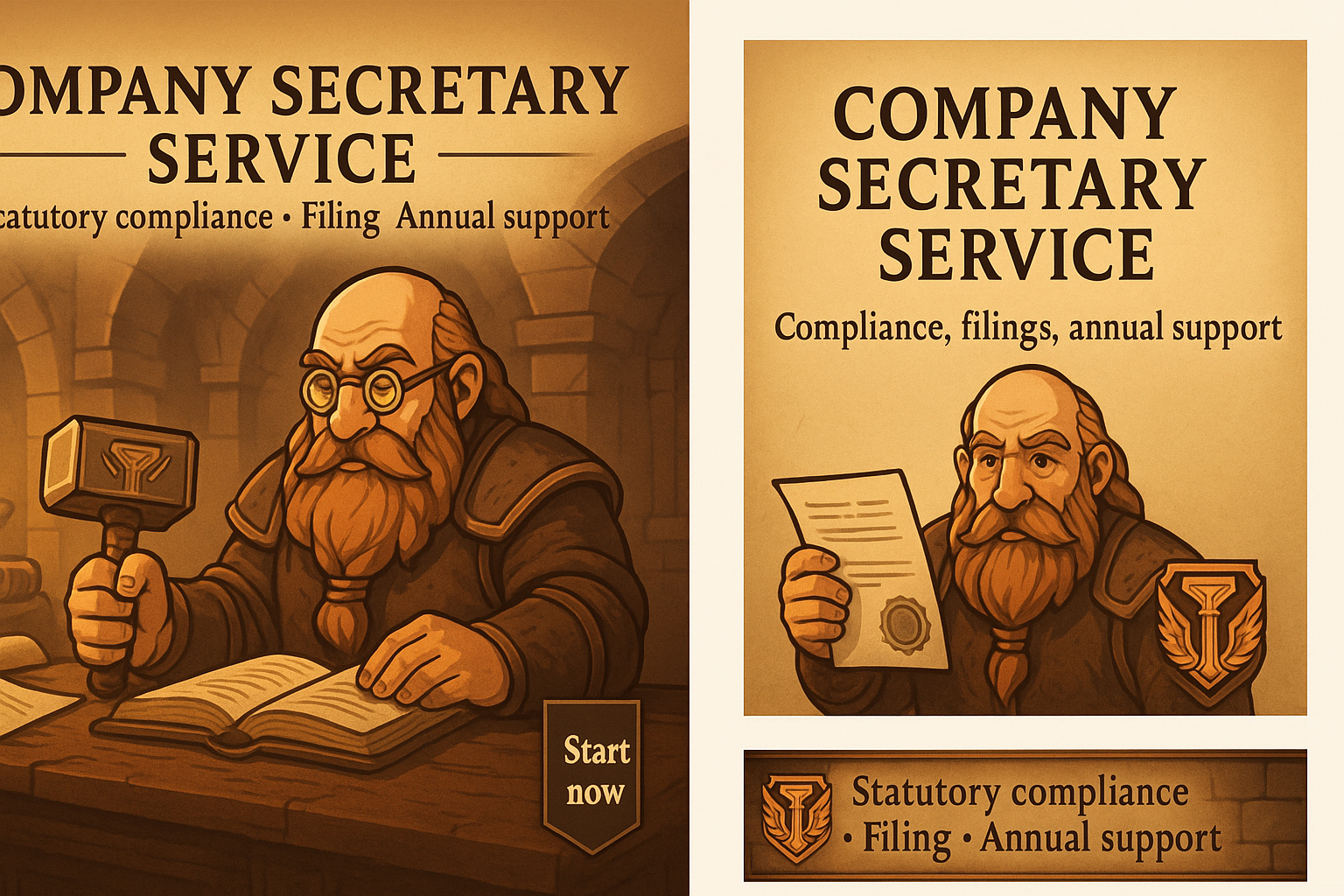 I am your dwarven company secretary: a stout guardian who represents your LTD, keeps the registers, files what must be filed, and answers the gatekeepers when they come calling. For a full year, my ledger-hands keep your fortress in order—no lapsed filings, no missed runes.